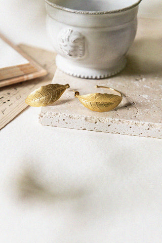 • Boucles Flore — créoles feuille de laurier, pièce iconique Bacci (valeur : 56€)